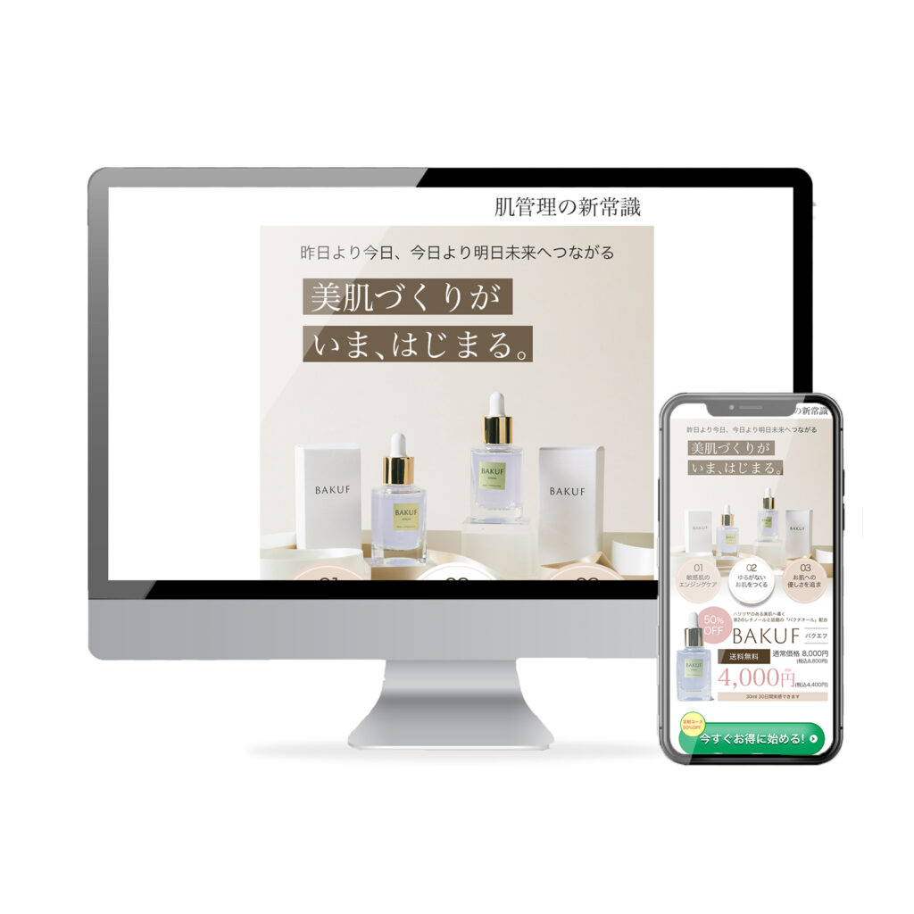 レスポンシブWebデザインにて設計します。