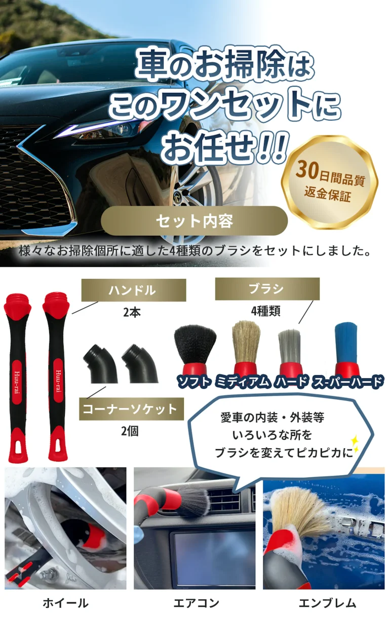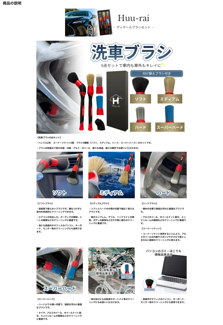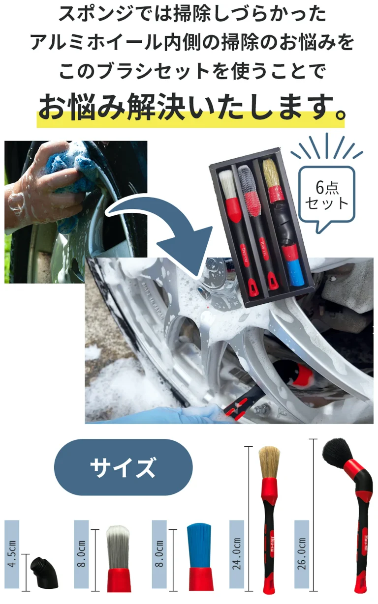 amazon:https://www.amazon.co.jp/ホイール用ブラシ-細部・すき間のクリーニングに使い分けできる洗車用筆ブラシ-タイヤブラシ-ディテールブラシ-Huu-Rai/dp/B0B8WRWT63/ref=sr_1_19_sspa?__mk_ja_JP=カタカナ&crid=ZAQFLU4PSAT0&keywords=洗車ブラシ&qid=1668506234&qu=eyJxc2MiOiI3LjAwIiwicXNhIjoiNi40MSIsInFzcCI6IjYuMDcifQ%3D%3D&sprefix=洗車ブラシ%2Caps%2C169&sr=8-19-spons&psc=1&spLa=ZW5jcnlwdGVkUXVhbGlmaWVyPUE2S0JBRDE5SU9CTjMmZW5jcnlwdGVkSWQ9QTEwMzE4MDgyQ0I1RVdGQjBGRUVEJmVuY3J5cHRlZEFkSWQ9QTJYTTJCTUdHM1dMN0Emd2lkZ2V0TmFtZT1zcF9tdGYmYWN0aW9uPWNsaWNrUmVkaXJlY3QmZG9Ob3RMb2dDbGljaz10cnVl