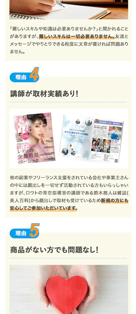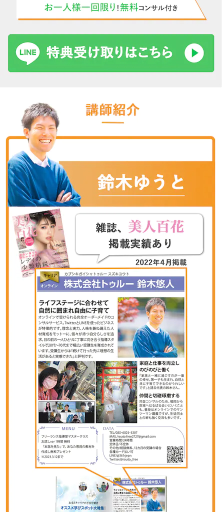 講師紹介:ここは信頼感をUPする重要なカテゴリーなのでオレンジを使用して全体的に目立つようにしています。