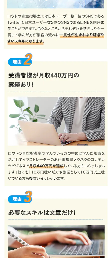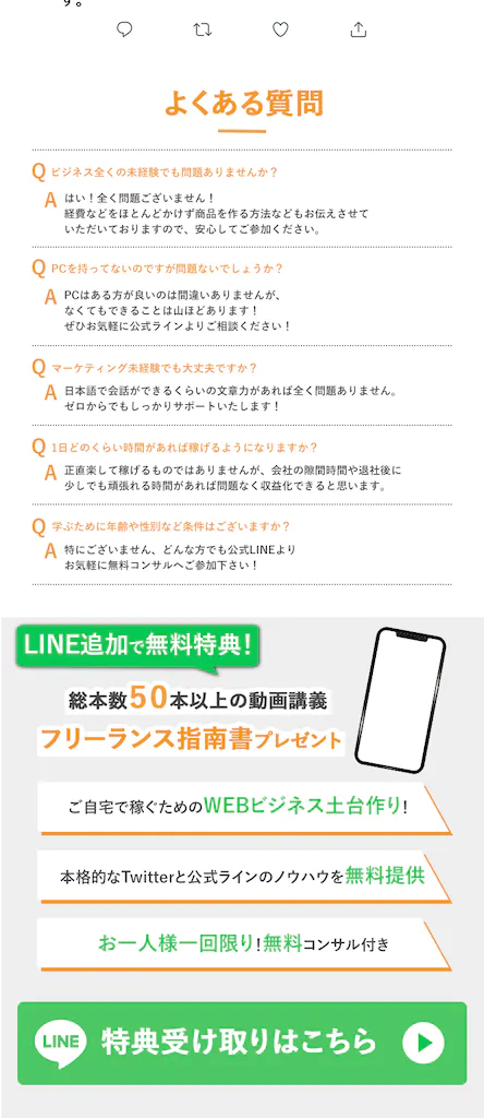 オファー:携帯の素材と公式LINEのスクリーショットを入れて信頼感をUPしています。