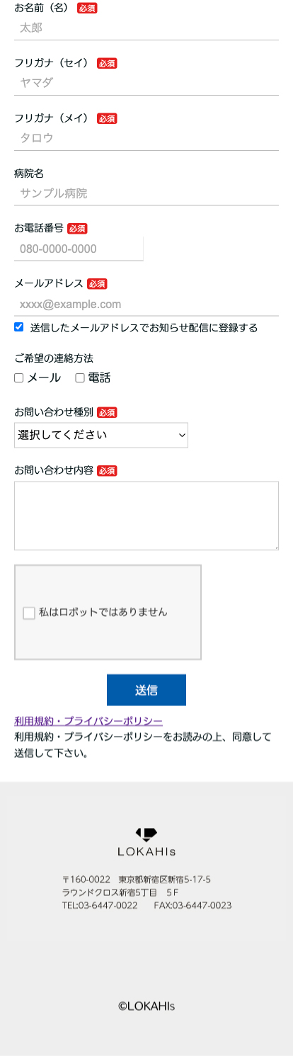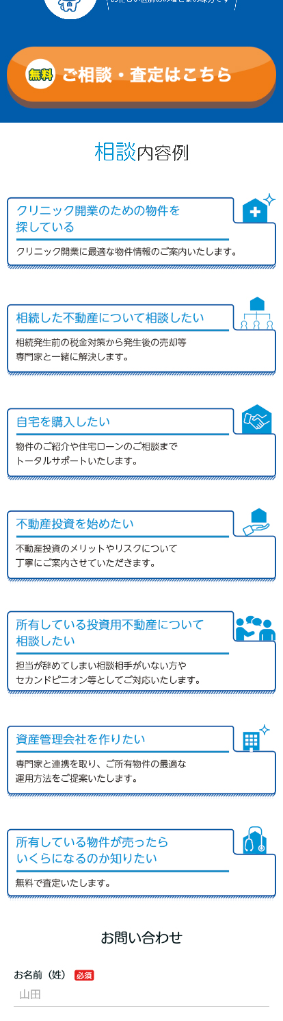 ボタン:全体的に青カラーなので目立つ色を選定して、スマホの幅いっぱいに設置し、ボタンとわかるようにしています。