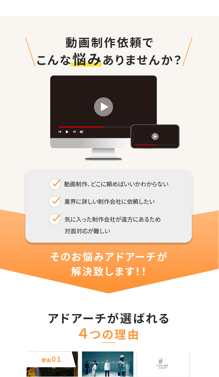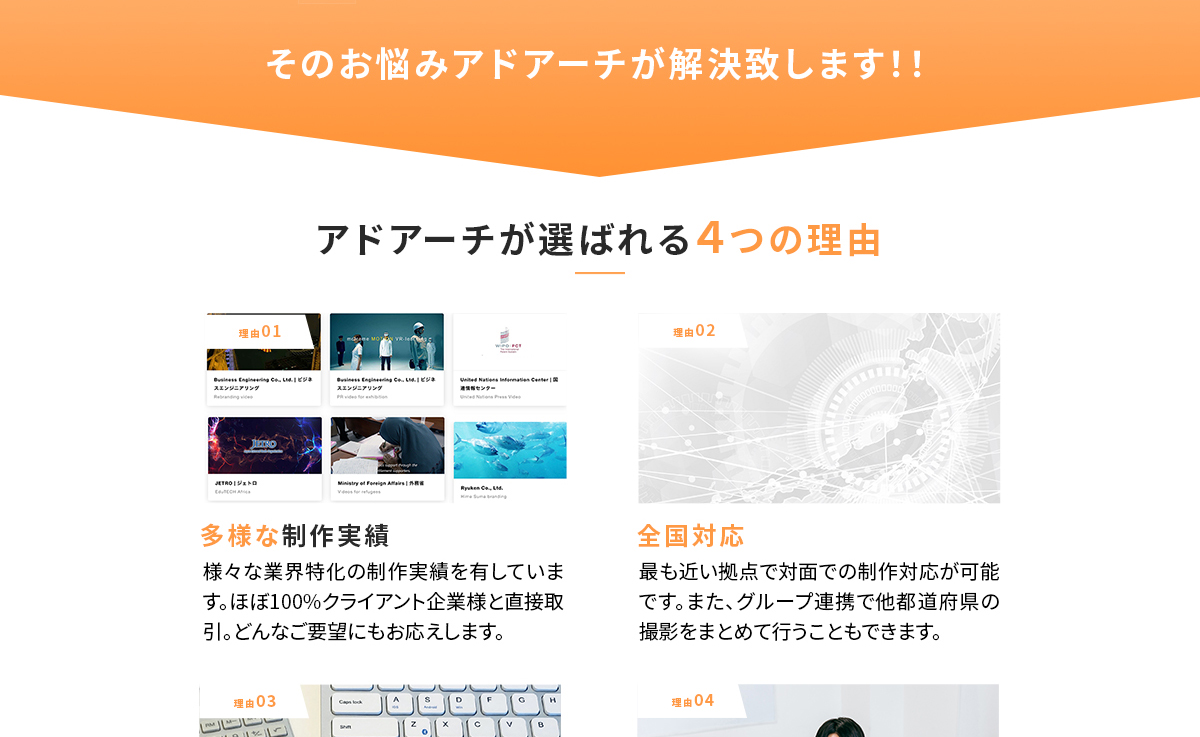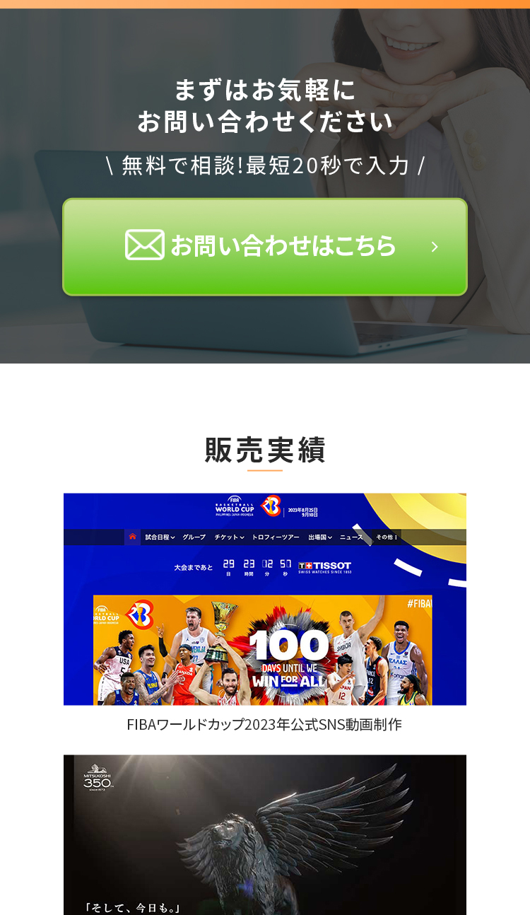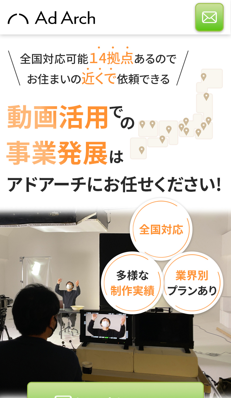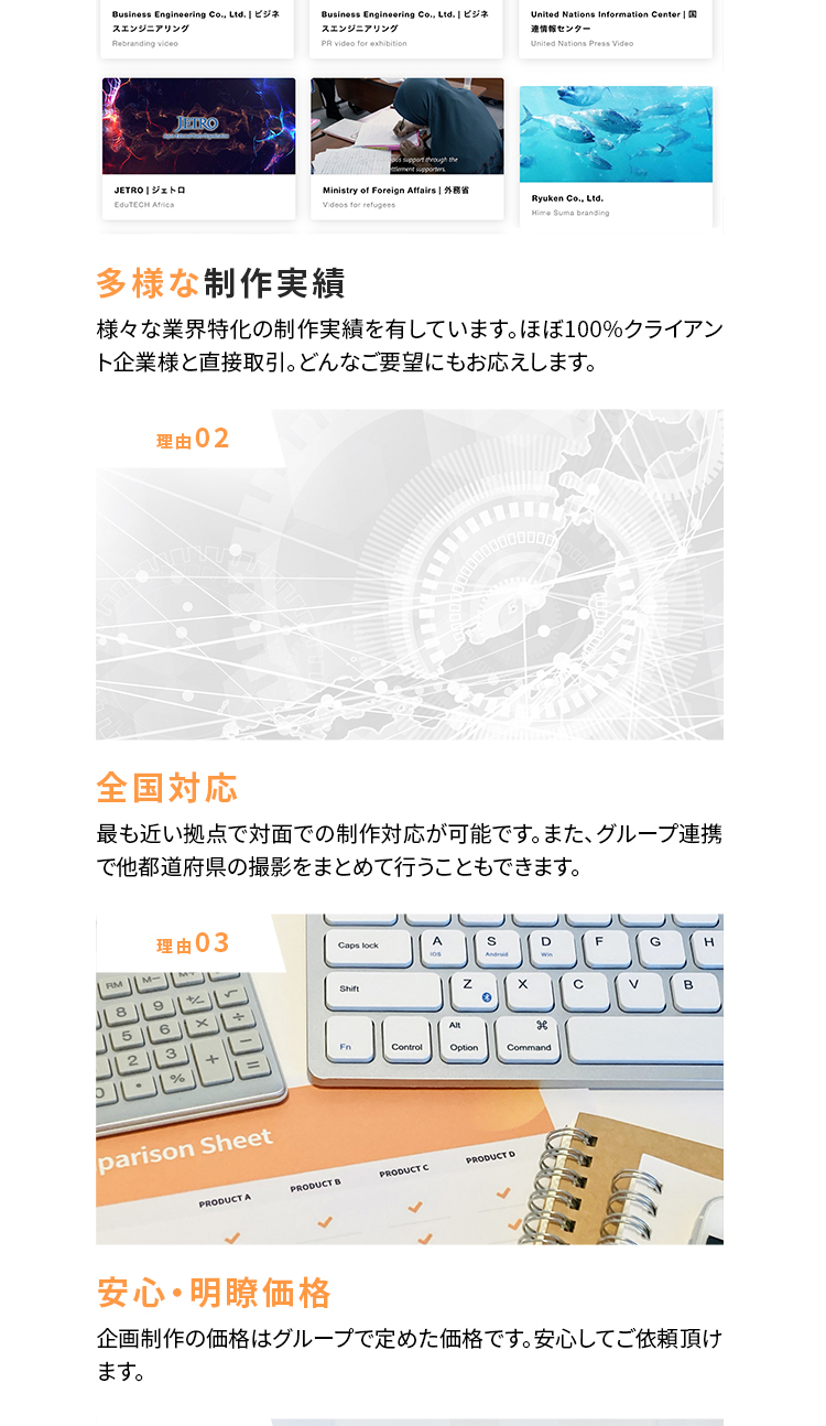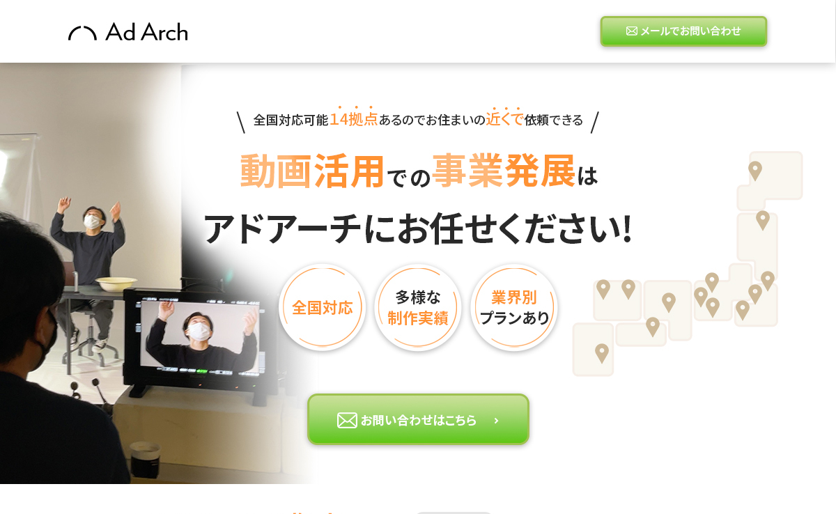 FVは拠点がたくさんある印象になるように日本地図のイラストを入れたり、動画制作のLPとわかるような素材も入れております。