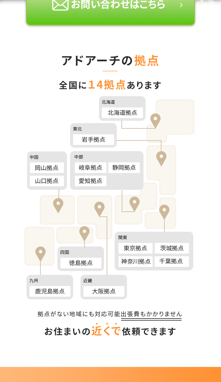 ワイヤーフレームは拠点が全国に展開していることを大きく表示させております。