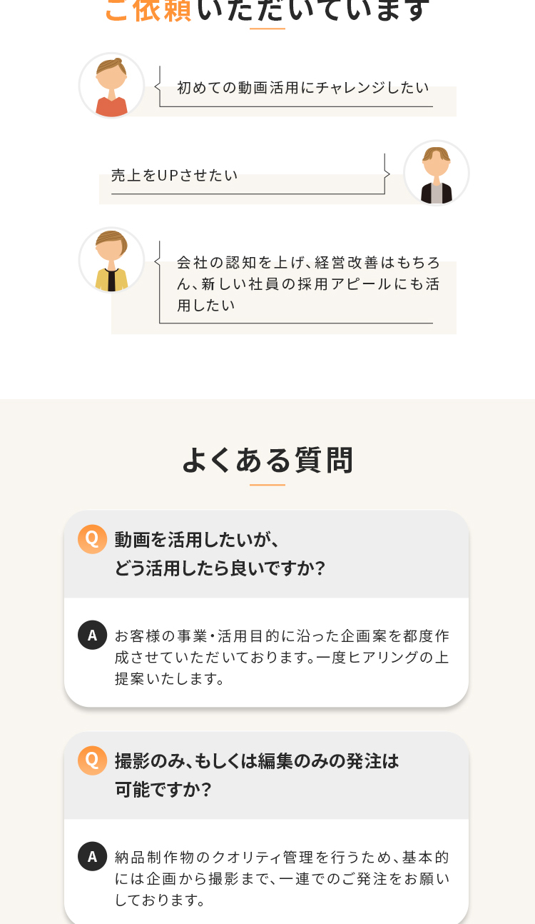 その他、HPには乗っていないターゲットに向けた悩みや選ばれるポイント・よくある質問なども入れて長くならない内容にしております。