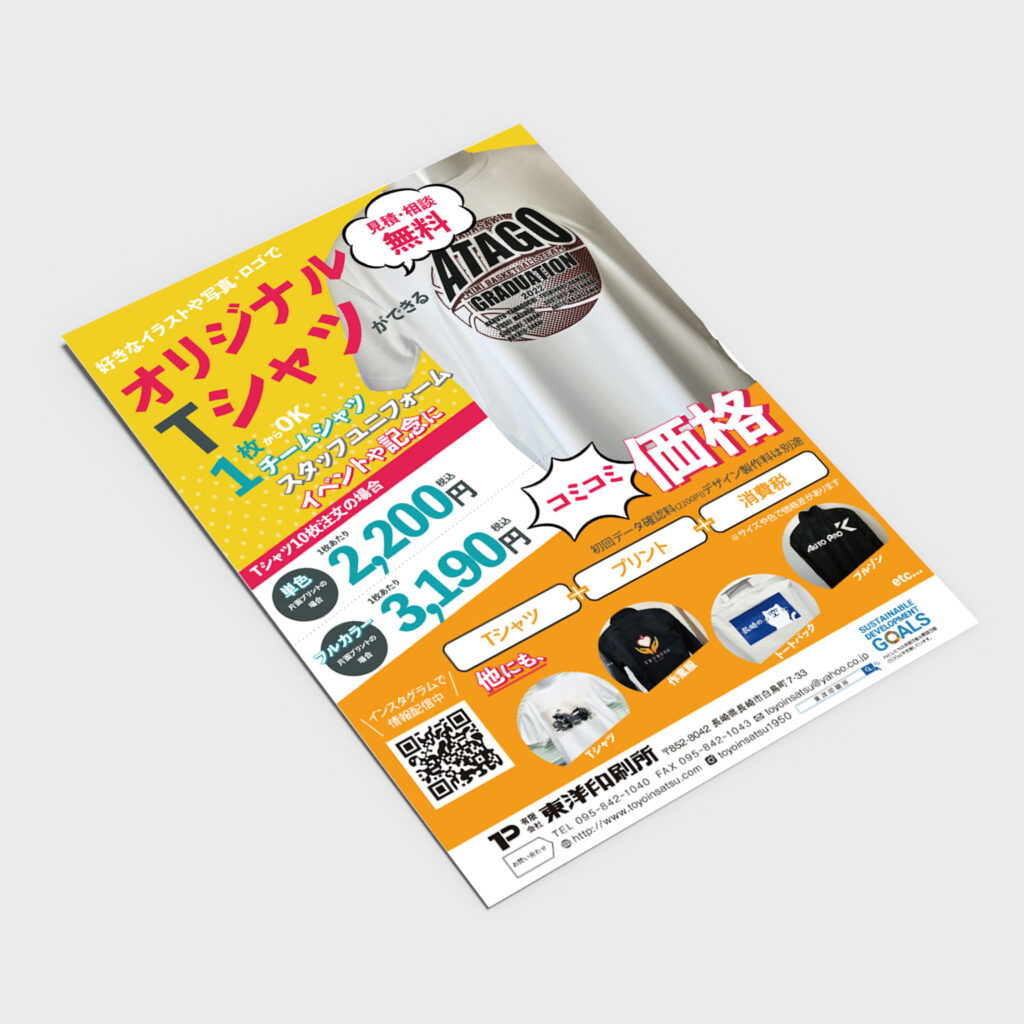チラシ内容:印刷会社なので印刷依頼して頂いた方にTシャツも作れよという認知してもらう為のチラシ