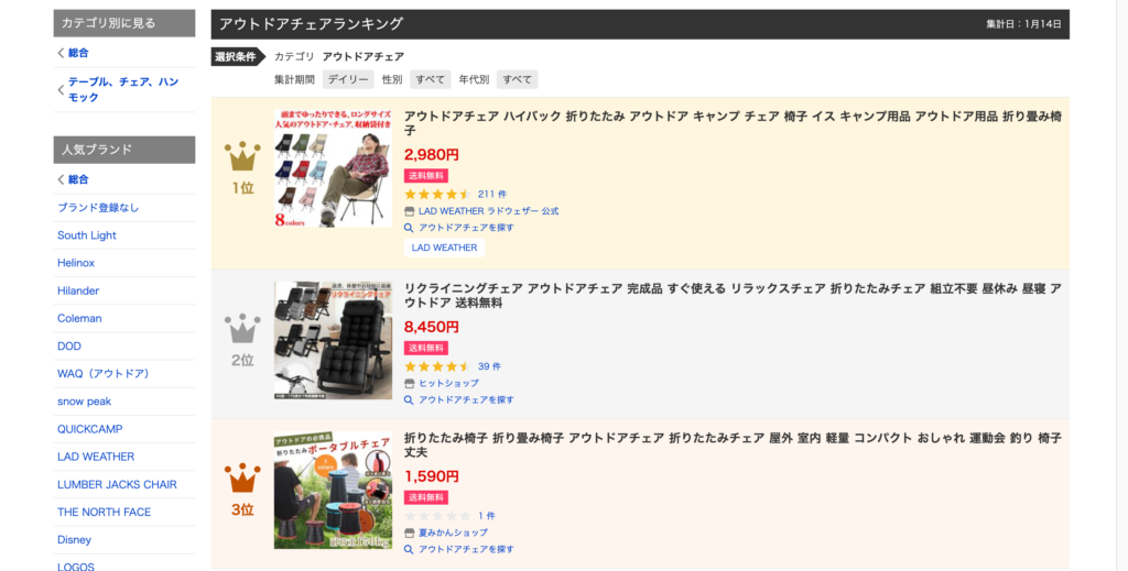 yahoo_アウトドアチェアランキング