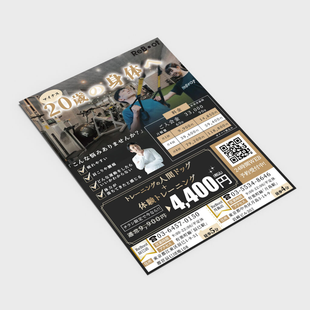 配布方法がポスティングなのでジムのチラシとパッと見てわかるようなデザインにしています。